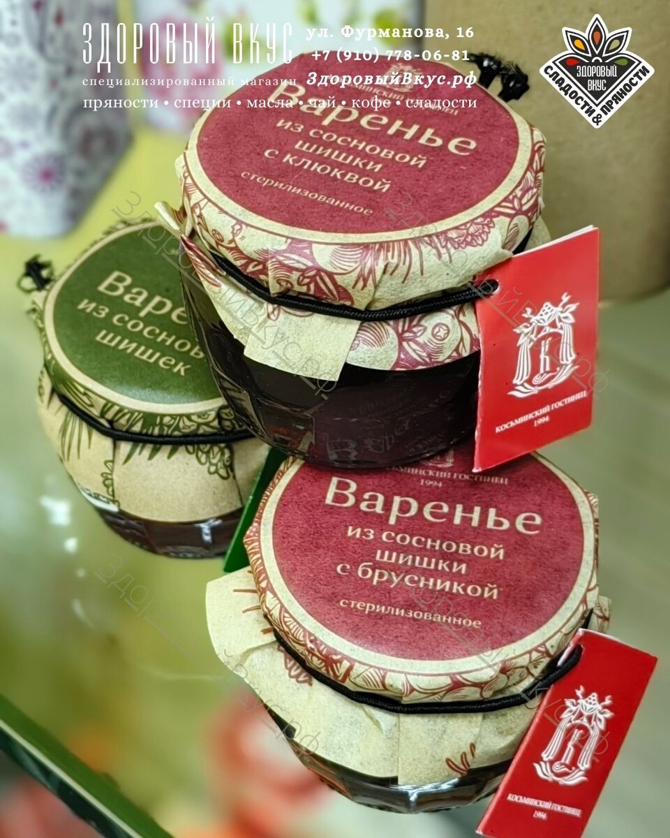 🍯🌲 Варенье из сосновых шишек — это не только необычное лакомство с хвойным ароматом, но и настоящий природный помощник для здоровья. 💖 Чем полезно варенье из сосновых шишек - Содержит фитонциды, которые поддерживают иммунитет и помогают бороться с простудой - Богато витаминами С и группы B - Обладает мягким отхаркивающим и противовоспалительным действием - Укрепляет сосуды и помогает при упадке сил 🍧 Как использовать варенье - С чаем — как профилактику простуды, особенно осенью и зимой - В качестве топпинга для сырников, каш, тостов и йогурта - Добавлять в выпечку для хвойных ноток - Использовать как натуральный сироп при кашле или легкой боли в горле 🎭 В нашем ассортименте не только классическое варенье из сосновых шишек, но и оригинальные сочетания с клюквой и брусникой: - Варенье из сосновых шишек с клюквой — с легкой кислинкой и дополнительной дозой витаминов - Варенье с брусникой — яркий вкус и усиленная польза для укрепления организма ☕ Выбирайте свой вариант для здоровья и