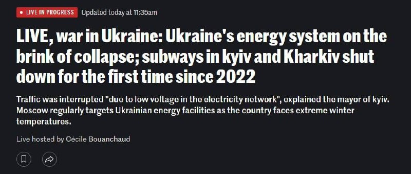 ‼️Сегодняшние отключения электроэнергии на Украине — признак того, что энергосистема на грани коллапса после ударов, — Le Monde