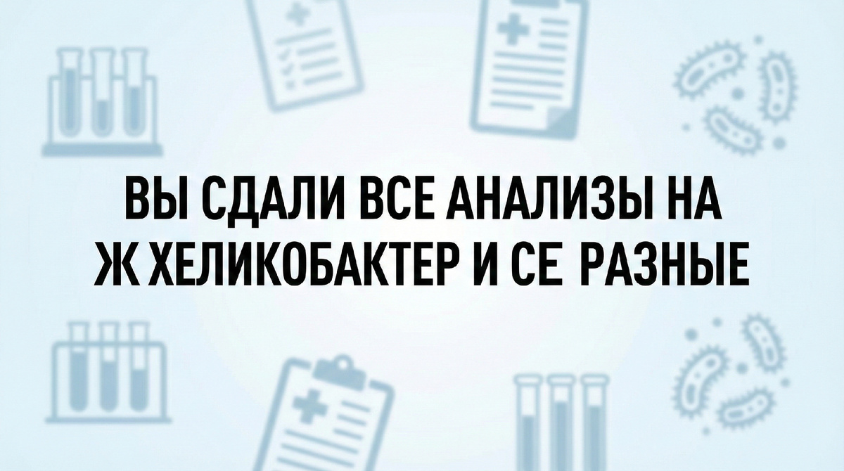 🩸Кровь показала положительный результат. Дыхательный тест — отрицательный. Кал — сомнительный. Один врач говорит: «Надо лечить». Другой: «Не трогайте, это норма». Вы в растерянности. Хеликобактер пилори — это бактерия, которая живёт в желудке. И да, она связана с гастритом, язвой, даже раком желудка. Но вот парадокс: эта бактерия есть у 50-70% населения планеты. И у большинства она не вызывает никаких проблем. Более того, есть исследования, которые показывают: хеликобактер защищает от некоторых заболеваний пищевода и даже от астмы. Так лечить или не лечить? А главное — как понять, есть он у вас или нет, если анализы противоречат друг другу? Давайте разберёмся с каждым методом диагностики. 🔸Первый — анализ крови на антитела к хеликобактеру. Самый популярный. Самый доступный. И самый бесполезный. Потому что антитела — это иммунный ответ организма на встречу с бактерией. Вы могли заразиться хеликобактером 10 лет назад. Потом он сам исчез или вы его вылечили. Но антитела остались. И буд