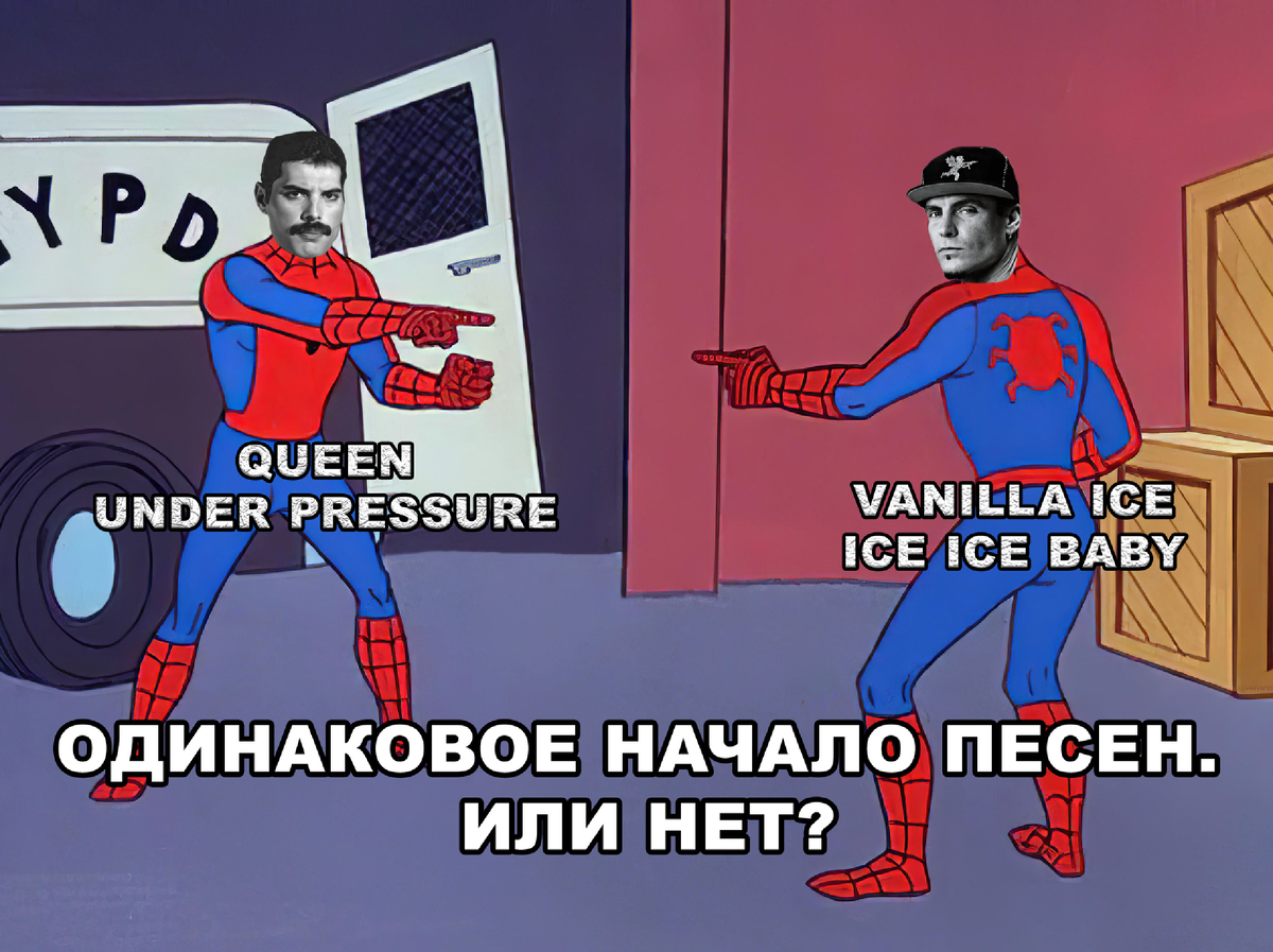 Иногда ловлю себя на странной привычке. Я люблю угадывать песню, которая начинает играть. И переодически возникает такое, что начинает играть трек, который я знаю практически наизусть. Но... голос не тот, мелодия меняется кардинально, да и вообще это не инди, а какой-то рэп. Становится ясно: нет, это не та песня. Но я на секунду был уверен. В связи с этим решил найти популярные схожие вступления и собрать их вместе. Ниже 5 примеров с одинаковым началом. Queen - Under Pressure