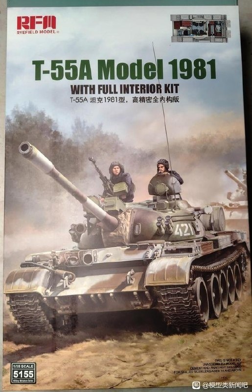 Китайская Rye Field Model (RFM) выпустила новый вариант своей модели Т-55А в масштабе 1/35 - теперь с интерьером:
