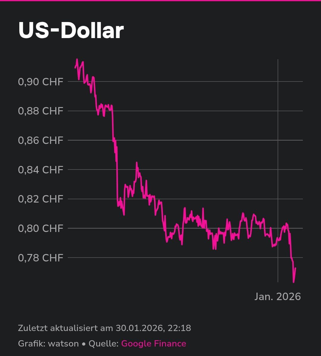 ? Швейцарский франк на рынке сейчас стоит почти как никогда дорого. Особенно наглядно это видно по отношению к неофициальной мировой валюте — доллару США. Во вторник за один франк временно давали более 1,3 доллара США, а в обратном направлении доллар на минимуме стоил всего 76 раппенов. Если не учитывать экстремальные колебания курсов после отмены минимального курса евро в 2015 году, такого раньше ещё не было. Сейчас у доллара США собственные серьёзные проблемы — не в последнюю очередь из-за политических событий. Однако аналогичная картина наблюдается и в паре евро/франк: за один евро недавно давали всего 91,6 раппена — такого уровня не фиксировалось никогда.