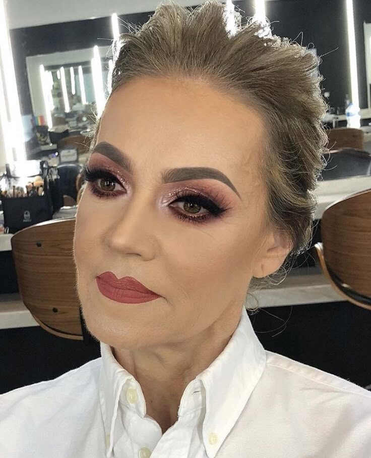 С наступлением определенного возраста каждая женщина замечает, что лицо ее уже не выглядит таким свежим, сияющим и подтянутым, как в молодости. Но переживая из-за того, что макияж не способен справиться с маскировкой возрастных несовершенств, зрелые дамы зачастую не понимают, что большинство их проблем связано не с косметикой, а с неумением ее подбирать для себя. В частности, они неправильно выбирают цвета и оттенки, которые только еще сильнее подчеркивают признаки зрелой кожи. Выбирая тональные средства, женщинам 50-60 лет не стоит отдавать предпочтение слишком темным тонам – они очень четко подчеркивают возрастные изменения кожи лица. Идеальным решением будут кремы, пудры и консилеры либо соответствующие естественному оттенку кожи, либо на один тон светлее его. Тем более следует отказаться от бронзаторов, особенно с оранжевым подтоном, так как они утяжеляют овал лица и обеспечивают «грязный» эффект. Оранжевый цвет недопустим и при выборе румян – он подчеркивает все неровности на зре