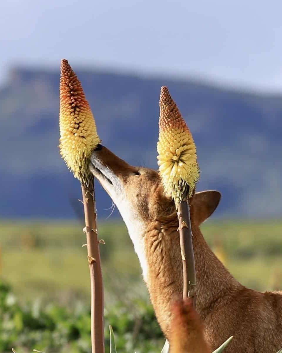В высокогорных лугах Эфиопское нагорье учёные стали свидетелями поведения, в которое сначала просто не поверили. Его даже назвали «десертной гипотезой». Представьте: эфиопский волк — редчайший и серьёзный хищник — неспешно бродит среди ярко-красных цветов книпхофия и… аккуратно слизывает нектар. Не рвёт лепестки, не грызёт — именно лакомится, переходя от цветка к цветку, словно гурман. Многолетние наблюдения подтвердили: это единственные крупные хищники в мире, которых зафиксировали за поеданием цветочного нектара. Настоящие пушистые «пчёлы» — только с волчьими мордами. Самое удивительное — практической пользы от этого почти нет. Нектара слишком мало, чтобы он имел энергетическое значение для такого зверя. Поэтому вывод учёных оказался неожиданно простым и очень человеческим: волкам просто нравится вкус. Как нам — маленький десерт после сытного обеда. Причём у некоторых особей эта «сладкая привычка» выражена особенно сильно, и выглядят они при этом откровенно довольными. Этот риту