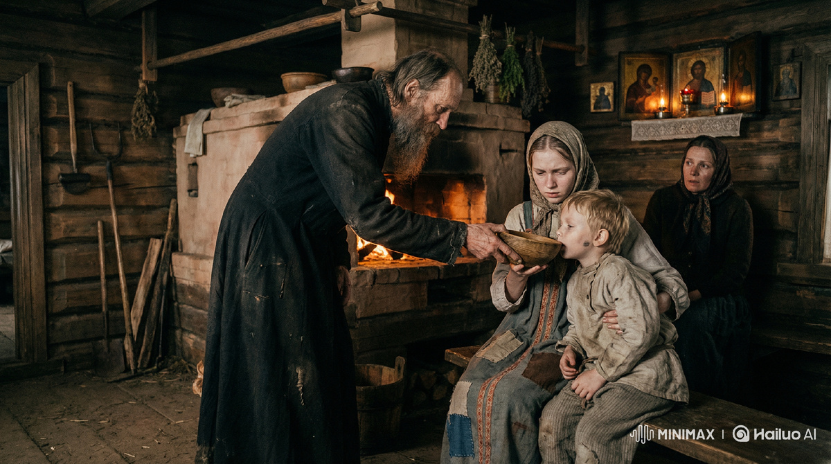 Аксинья сменила на лбу у Феди компресс, как велели. Вода была уже тёплой, пальцы двигались послушно. И вдруг она поймала себя на том, что слушает не брата, не шорохи избы, а это едва слышное монашеское шептание. Знакомые слова: «Господи», «помилуй», «раба Твоего Феодора». Но между ними, казалось, были и другие, невидимые, о которых ей и не снилось.