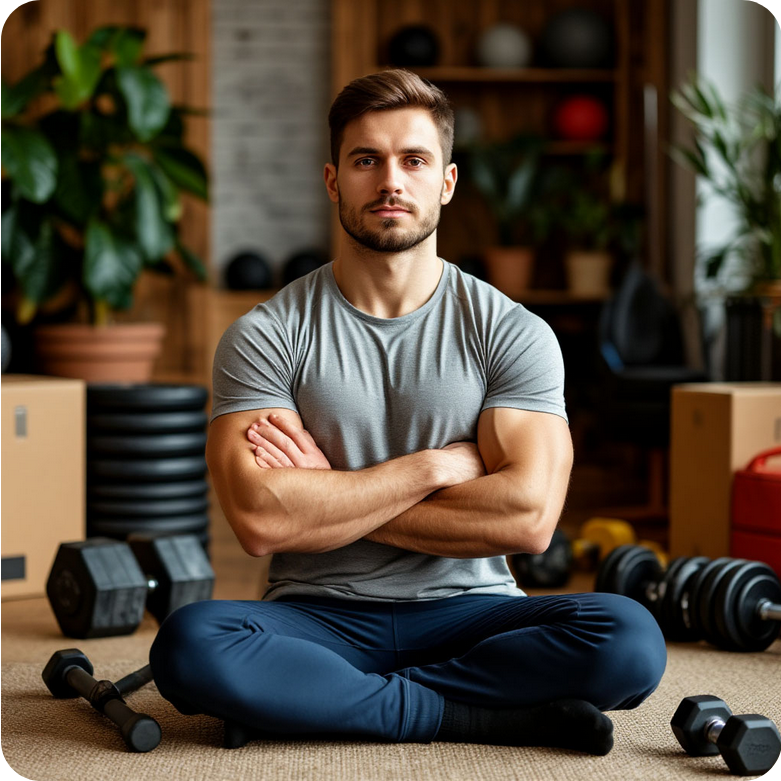 Он аккуратно извлекал из коробок покупки и расставлял их в центре гостиной. Кроссовки, коврик, эспандеры, гиря-пустышка, все коробочки с гаджетами, бутылки, пояс для похудения с «эффектом сауны»…