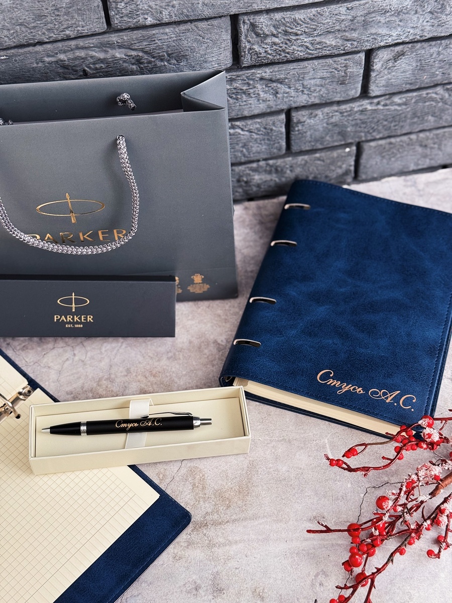 Именной блокнот и ручка Паркер с его именем!