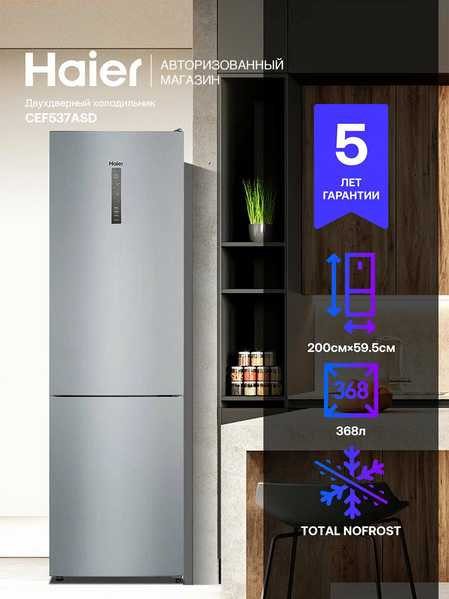 Хотите забыть о разморозке и сохранить продукты свежими как можно дольше? Холодильники с системой No Frost — именно то, что нужно! Они предотвращают образование наледи, поддерживают равномерную температуру и облегчают уход. Но как не растеряться в многообразии моделей и подобрать оптимальный вариант под свои потребности и бюджет? В этой статье мы детально сравним 8 популярных холодильников с технологией No Frost, чтобы помочь вам сделать осознанный выбор. 1. Haier CEF537ASD Полноразмерный холодильник с системой No Frost. Ключевые характеристики: общий объём — 386 л, класс энергопотребления A+, технология Multi Air Flow для равномерного распределения холода. Преимущества: тихий режим работы, удобное зонирование пространства, LED‑подсветка. Недостаток: отсутствие диспенсера для воды. Ценовой сегмент — средний.