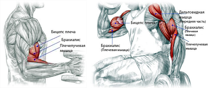 Когда смотрите на себя прямо (в зеркало) и сгибаете бицепс, то сбоку шар выступает. Обычно он спереди, если качать открытым хватом. Ладонями вверх. Но хват ладонями вниз (верхний хват) прокачивает брахиалис и особенно суставную плечелучевую мышцу. На нижнем рисунке наглядно виден эффект.