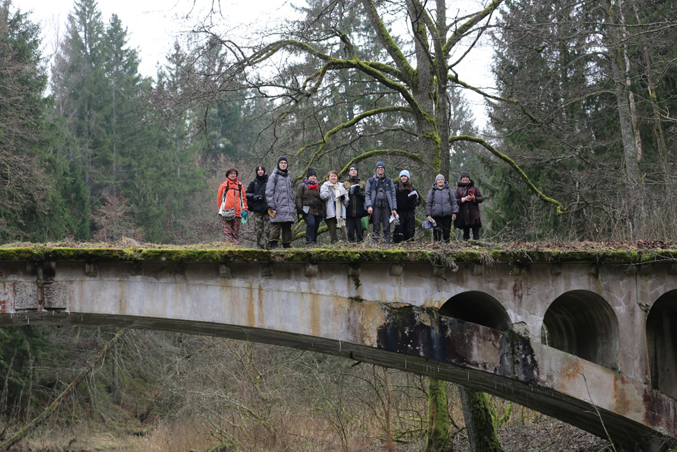 Стоит упомянуть, что на территории национального парка нет оборудованных экологических троп, они здесь только намечены. Везде нами отмечалось очень хорошее состояние экосистем лесов и береговых линий. Мы посетили гору Дозор — самую высокую точку Калининградской области — и дали красивое имя принесенному ледником огромному валуну, назвав его «Сердце Виштынца». Большое восхищение у нас вызвала Роминтенская пуща в долине реки Красная. Повсеместно прекрасно сохранились брусчатые дороги, мощенные несколько веков назад, виды ее выстилки называются «черепашье пузико» и «хвост павлина». Еще один примечательный архитектурный объект — мосты, построенные в начале прошлого века. Везде чувствовалось переплетение разных времен, культур и мистических историй. В этих таинственных местах мы отметили важную фенологическую фазу растений, встретив расцветших предвестников тепла — нежные первоцветы — ярко-фиолетовую печеночницу и белые подснежники. Самыми интересными находками наша группа единодушно признала погрызы деревьев бобрами и созданные ими плотины и завалы.