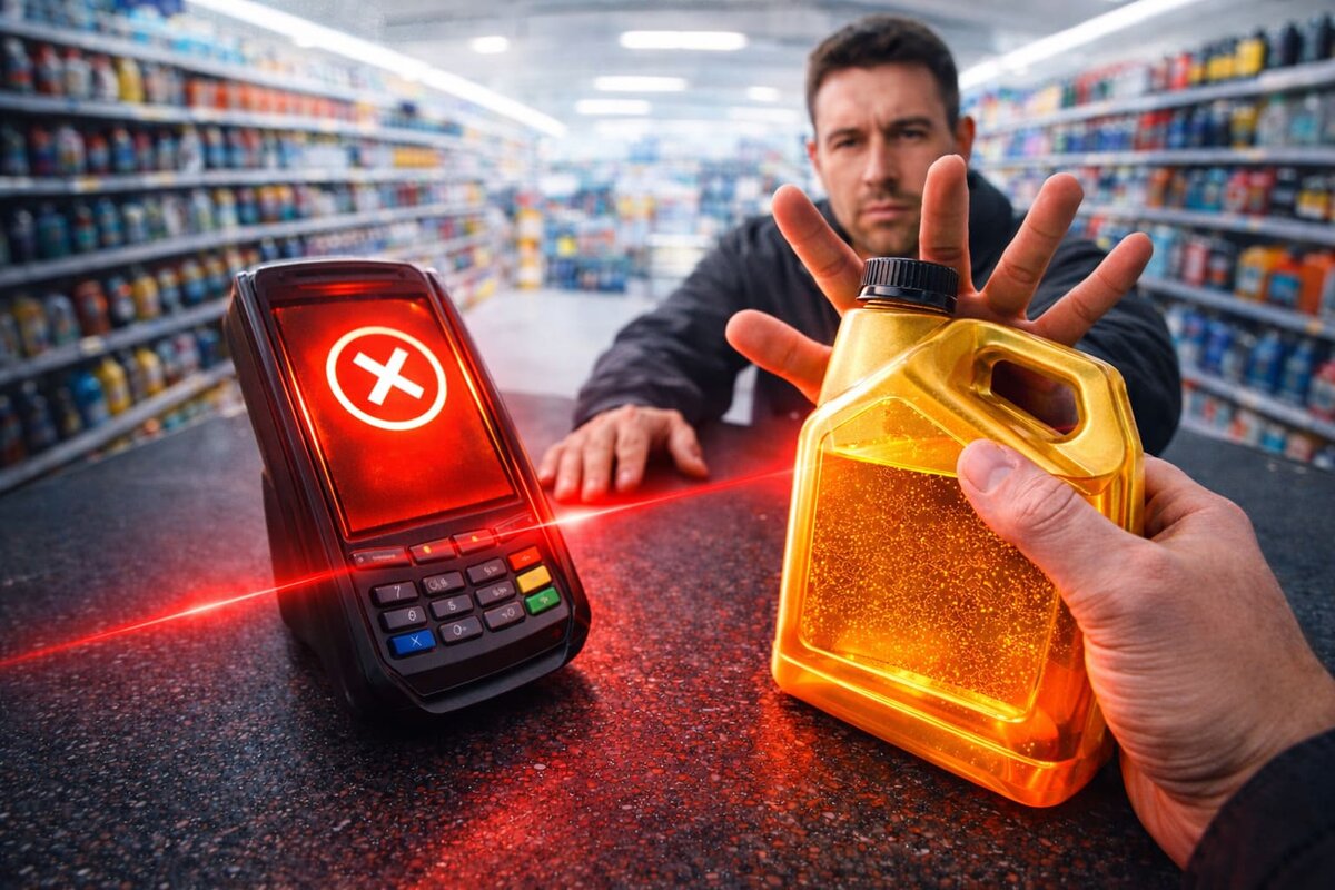 Я думал, что это банальный сбой терминала. Стою в очереди, держу тяжелую канистру 5W-40, уже мысленно заливаю свежее масло в двигатель. Кассир пикает сканером, и... тишина. Потом еще раз. И еще. Вместо привычного писка — тревожный сигнал ошибки и красный экран на мониторе. Девушка за кассой устало вздыхает и отодвигает мою канистру в сторону: