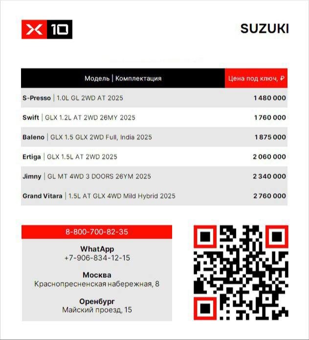 πΈΠ‘Π°ΠΌΡΠ΅ ΡΠ²Π΅ΠΆΠΈΠ΅ ΡΠ΅Π½Ρ Π½Π° Π»ΠΈΠ½Π΅ΠΉΠΊΡ Suzuki 2025 Π³ΠΎΠ΄Π° β ΡΡΠΎΠΈΠΌΠΎΡΡΡ ΡΠΊΠ°Π·Π°Π½Π° Ρ ΡΡΡΡΠΎΠΌ ΡΠ°ΡΡΠ°ΠΌΠΎΠΆΠΊΠΈ ΠΈ Π΄ΠΎΡΡΠ°Π²ΠΊΠΈ Π² ΠΠΎΡΠΊΠ²Ρ