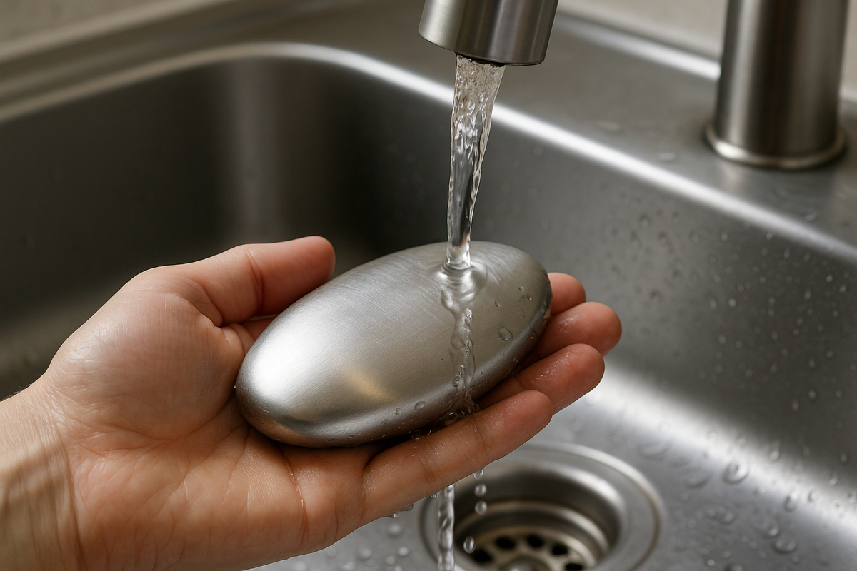 Режете чеснок или чистите рыбу, моете руки обычным мылом, а запах всё равно держится. И тут появляется странный предмет: брусок из нержавейки, который обещает убрать аромат без капли моющего средства. Это работает на самом деле или это кухонная легенда? Почему именно нержавеющая сталь, что происходит на коже и можно ли заменить такой брусок любой железкой? Стойкие кухонные запахи часто дают соединения серы. У чеснока и лука это продукты превращений аллицина и родственных веществ, у рыбы и морепродуктов к аромату добавляются летучие серосодержащие молекулы и следы белковых и жировых компонентов. Эти вещества цепкие: часть уходит обычным мытьём, а часть задерживается на коже, в микротрещинах, в области кутикулы и под ногтями. Поэтому может возникать ощущение, что руки чистые, а запах остался. Отсюда главный вопрос: можно ли не только смыть грязь, но и убрать именно пахучие молекулы, которые прилипли к коже? Идея металлического мыла строится на взаимодействии серосодержащих соединений с