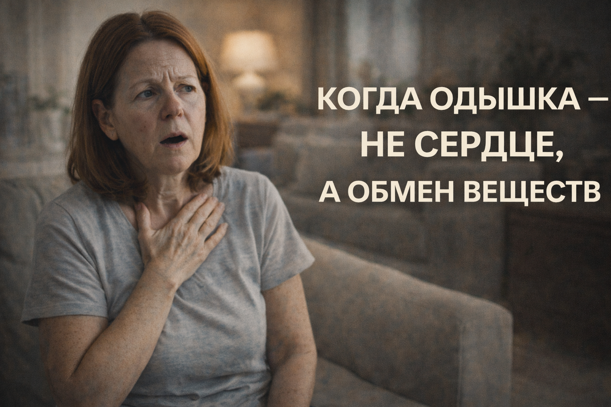 Одышка пугает. Особенно если она появляется без бега, без подъёма по лестнице и даже в покое. Первая мысль у большинства — сердце. Давление, сосуды, инфаркт. Но в реальности значительная часть одышки не имеет прямого отношения к сердцу. Часто её причина — нарушения обмена веществ, которые годами остаются без внимания. Разберёмся, как это работает. Одышка — это ощущение нехватки воздуха или несоответствия между дыханием и нагрузкой. Важно: это ощущение, а не всегда объективная проблема лёгких или сердца. Мозг получает сигналы от: И если этот баланс нарушен — появляется ощущение, что «не хватает воздуха». При нарушении углеводного обмена: В результате дыхательный центр в мозге активируется, даже если кислорода достаточно. Человек начинает дышать чаще и глубже — появляется одышка. Часто она: При анемии кислород в лёгкие поступает нормально, но переносится плохо, потому что не хватает гемоглобина. Организм компенсирует это: Часто анемия бывает скрытой и годами списывается на «возраст» или