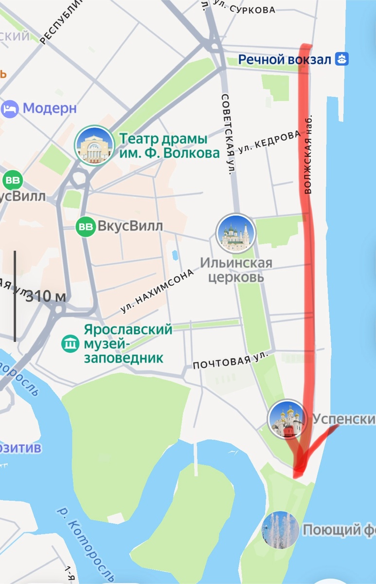 По левую сторону — Волга, по правую — храмы и старинные здания, во многих из которых теперь находятся музеи.