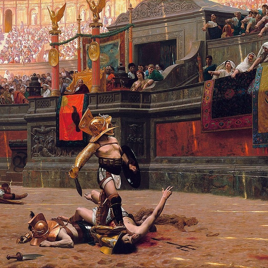 ? Мнение о том, что древнеримские зрители в Колизее выбирали жизнь или смерть для побеждённого, направляя большой палец вверх или вниз, ошибочно. Оно возникло после появления картины "Pollice Verso" художника Жана-Леона Жерома, который неправильно истолковал латинский текст. На самом деле отогнутый в любом направлении (вверх или вниз) большой палец означал смерть для побеждённого, символизируя обнажённый меч. А чтобы даровать жизнь, зрители показывали сжатый кулак, намекая на меч, спрятанный в ножны. Encyclopaedia Romana / The Gladiator and the Thumb https://penelope.uchicago.edu/~grout/encyclopaedia_romana/gladiators/polliceverso.html