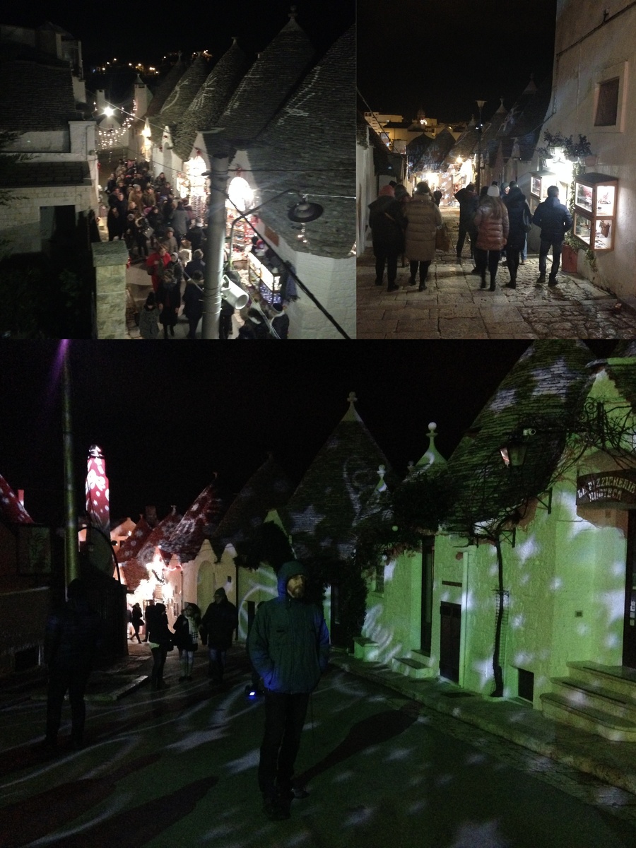 Альберобелло — местечко, куда едут все туристы юга Италии. Если в соседних городках их может быть много, то здесь праздношатающихся ещё больше. Если на улицах вы где-то видели много идущих людей — то здесь вы будете вечно стоять и ждать, когда же толпа, наконец, продвинется вперёд. Ну, или идти как пингвинчики, переминаясь с ноги на ногу.