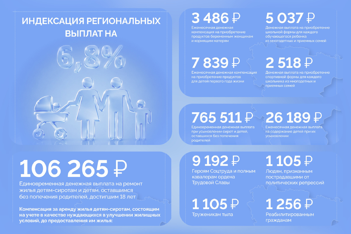 С 1 февраля изменится сумма не только федеральных, но и региональных выплат. В Воронежской области они будут проиндексированы на 6,8%. Как и в случае с федеральными льготами и платежами, специалисты министерства социальной защиты области проведут повышение автоматически — никаких заявлений или справок предоставлять не нужно.