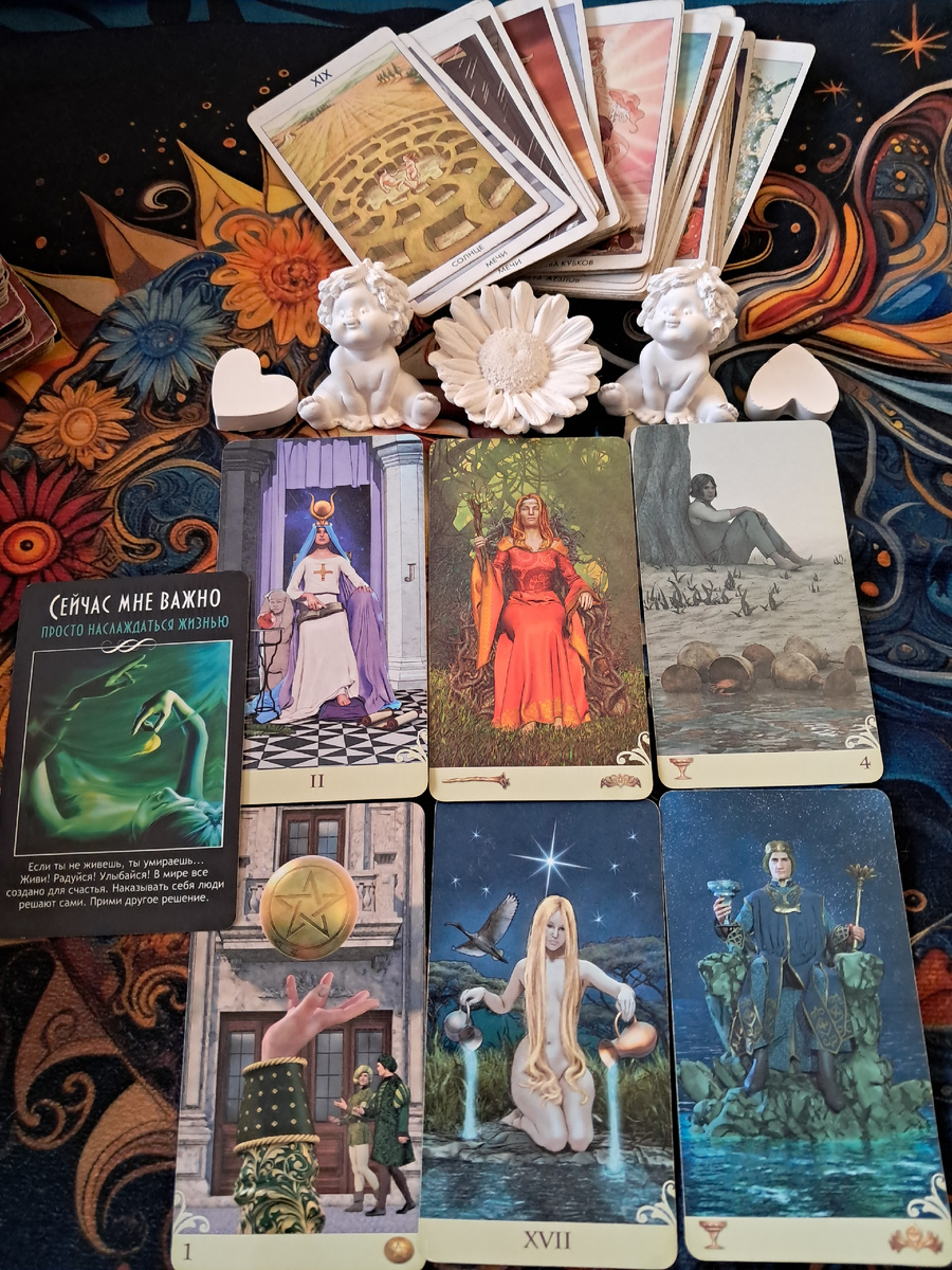 Если возникнет ситуация выбора, сделайте паузу (4 Чаш), прислушайтесь к интуиции (Верховная Жрица) — и вы найдёте верный путь, который будет одновременно практичным (Туз Пентаклей) и вдохновляющим (Звезда).✴️