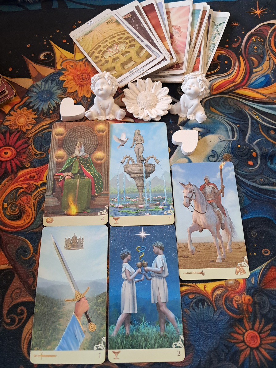 Используйте свою ментальную ясность и решимость (Туз Мечей), чтобы защитить свои жизненные ресурсы и энергию (4 Пентаклей). На этой стабильной основе смело идите на сближение в финансовых (2 Кубков) и личных (Туз Кубков) вопросах. Не медлите — сегодняшний день требует активных, страстных шагов (Рыцарь Жезлов) к вашим целям, особенно тем, что связаны с сердцем и сотрудничеством.