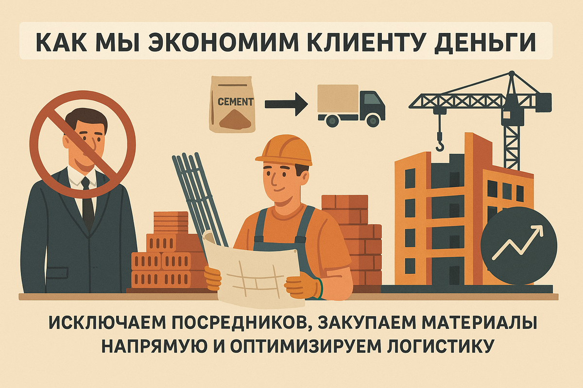 Мы исключаем посредников, закупаем материалы напрямую и оптимизируем логистику. Это обеспечивает выигрыш в бюджете, при этом качество строительных решений остаётся на высоком уровне. Экономия достигается за счёт грамотного планирования, а не снижения качества.