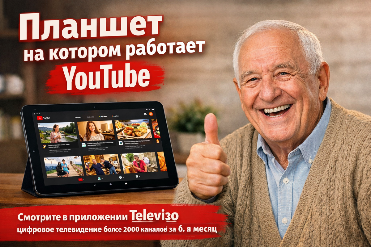 В 2026 году многие ищут надёжный планшет для YouTube, на котором видео загружается быстро и без перебоев. Этот мощный планшет полностью решает задачу — полный доступ к видеохостингу открывается сразу после включения одного из предустановленных приложений. Большой яркий дисплей и мощный процессор обеспечивают плавный просмотр видео в высоком качестве. Батарея держит заряд долго, поэтому комфортный просмотр возможен часами — дома, в поездке или на даче. Это отличный семейный планшет для всех возрастов. Особенно радует стабильная работа YouTube: после простого включения в приложении Happ или V2RayTun контент открывается мгновенно и без задержек. Тысячи видео, стримы и рекомендации загружаются быстро — лучший выбор для тех, кто хочет смотреть YouTube без лишних действий. В дополнение к видеохостингу на устройстве предустановлено приложение Televizo с доступом к более чем 2000 ТВ-каналов бесплатно: новости, фильмы, спорт, детский контент — всё в высоком качестве без абонентской платы. Такой