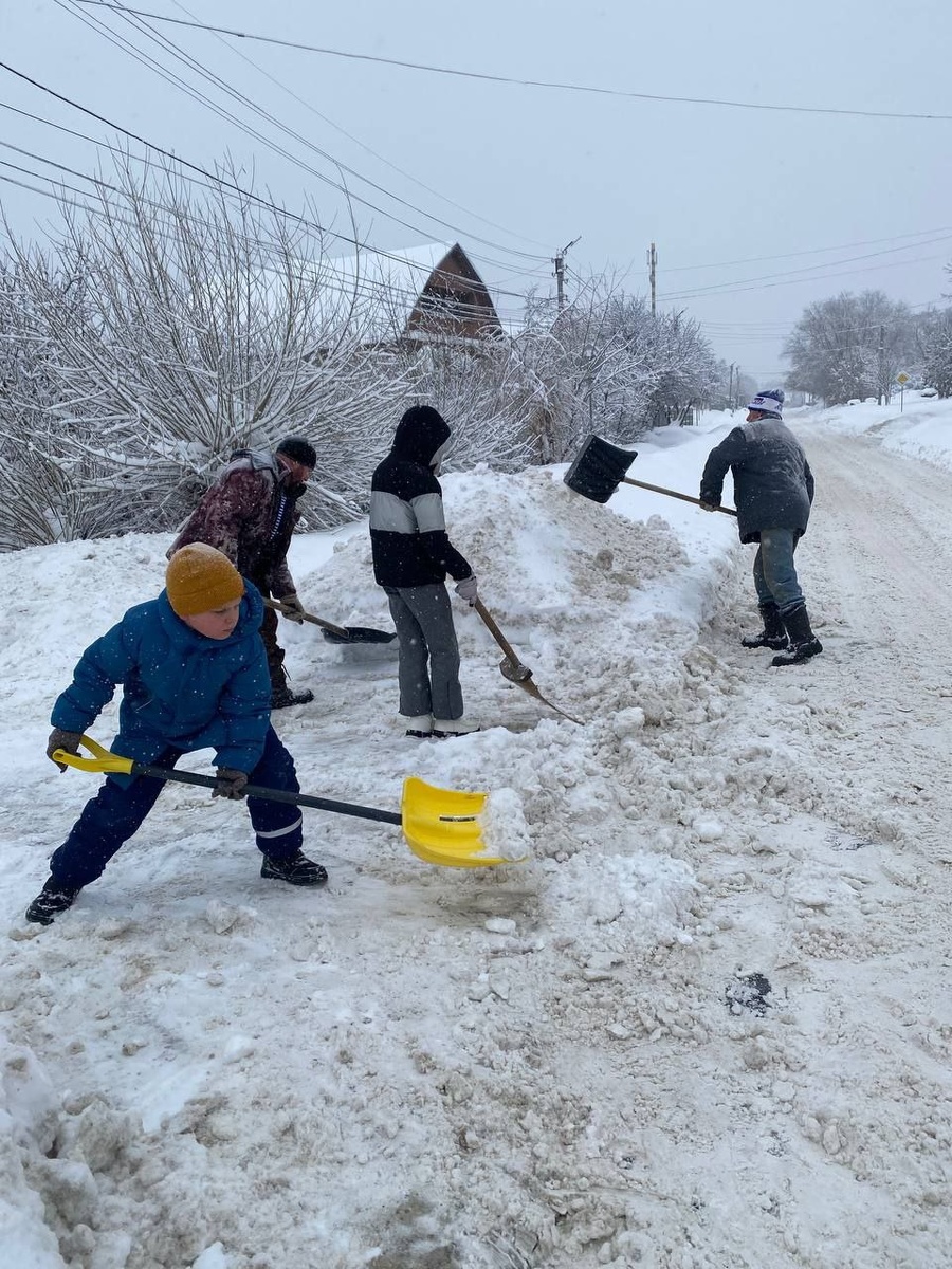 Жители города всех возрастов сами выходят на борьбу со стихией. Переулок Ленинградский.