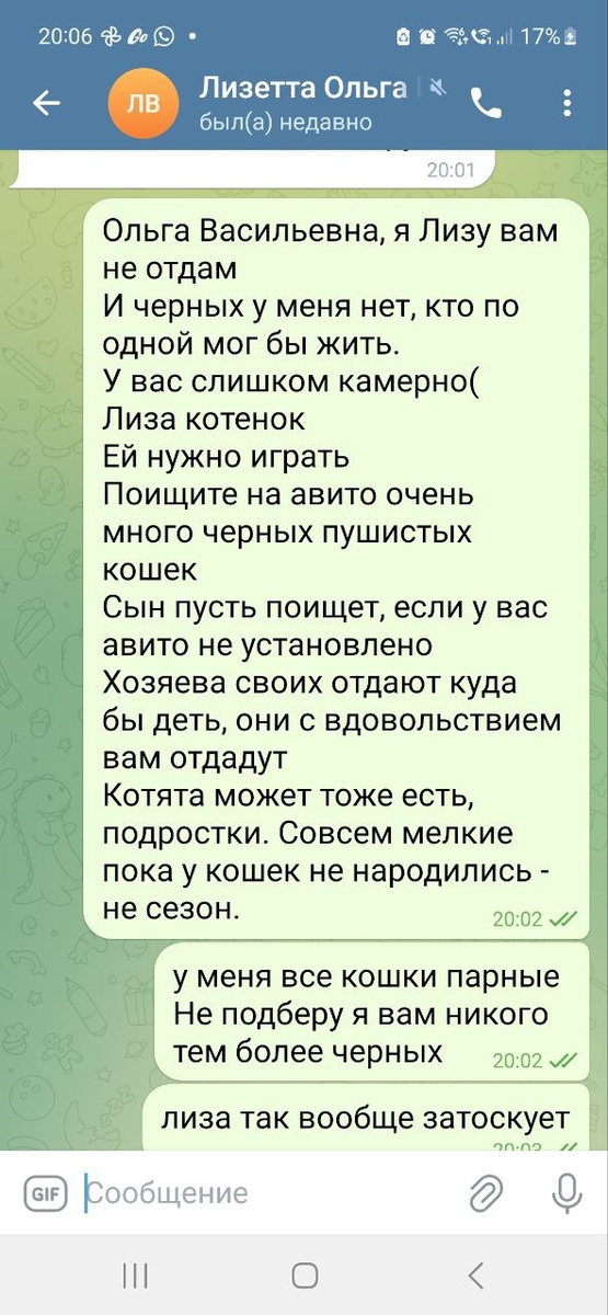 По Лизе запросы, в первом даже антикошка стоит, только возраст 50-60 и мама-старушка. Второй запрос как много. Тоже повесится со скуки кошке,тем более котенку. Вот и сижу с ними. Реально по одному могу отдать только Сару, Чижика и может быть Алису и Барсика. Эти могут и по одному пожить. Чижик так и вовсе устал уже в толпе, он мне кажется с радостью отдохнет на руках единственным.Но это мне так кажется. Я про Кекса тоже так думала... А теперь и не знаю, что о нем и думать