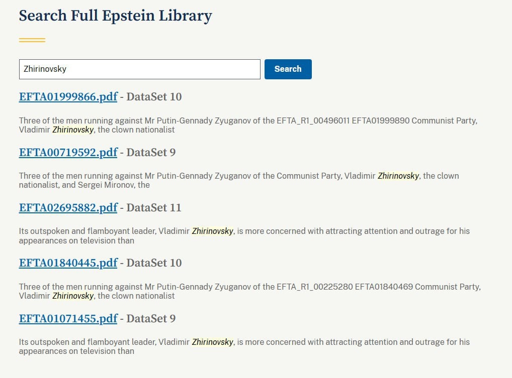 Жириновского обнаружили в файлах Эпштейна. Имя политика упоминается целых пять раз