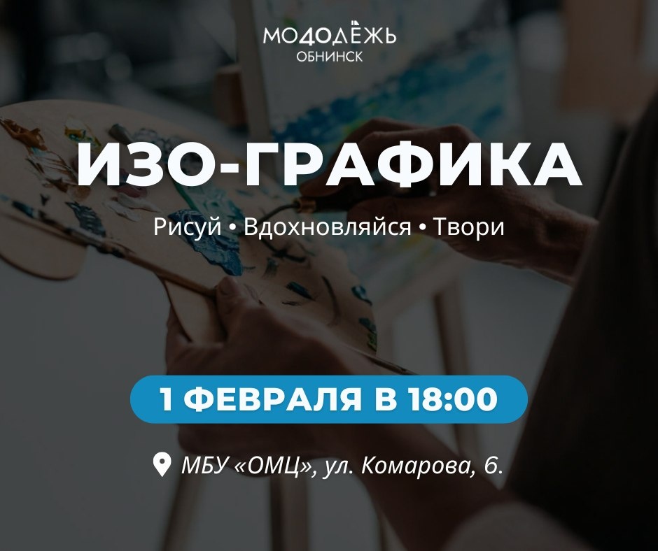 ! Если тебе нравится рисовать, экспериментировать с линиями и находить красоту в простых формах — приходи на занятие по ИЗО-графике в Обнинский молодёжный центр. ❗️ Возрастное ограничение: 11+ 🕓 Дата и время: 1 февраля в 18:00 📍 Место: МБУ «ОМЦ», ул. Комарова, 6, 2 этаж (центральный вход) Предварительная регистрация: https://forms.yandex.ru/u/697b6a621f1eb50f78fb849a 👍 Подписаться | Ваша реклама