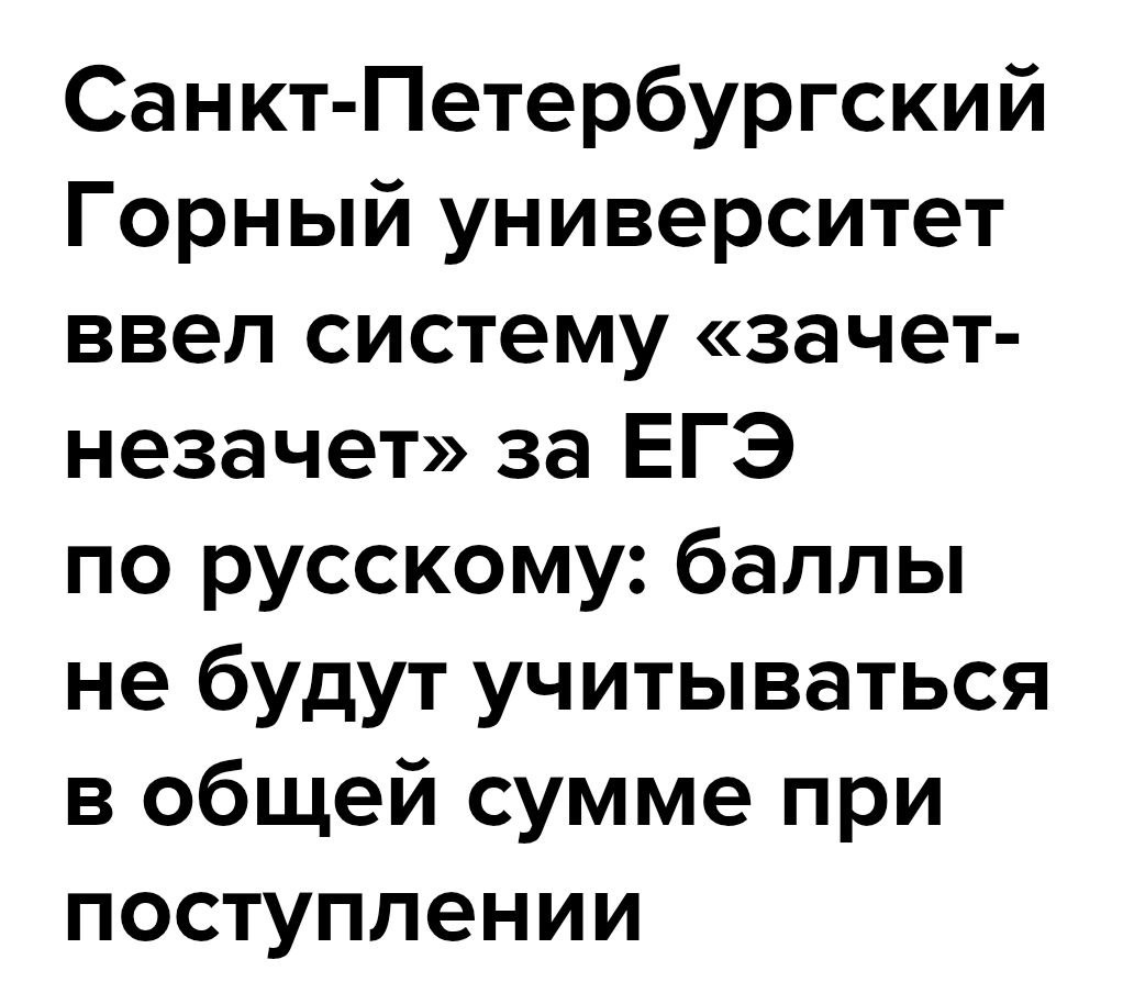 Санкт-Петербургский Горный университет ввел систему «зачет-незачет» за ЕГЭ по русскому: баллы за этот экзамен не будут учитываться в общей
