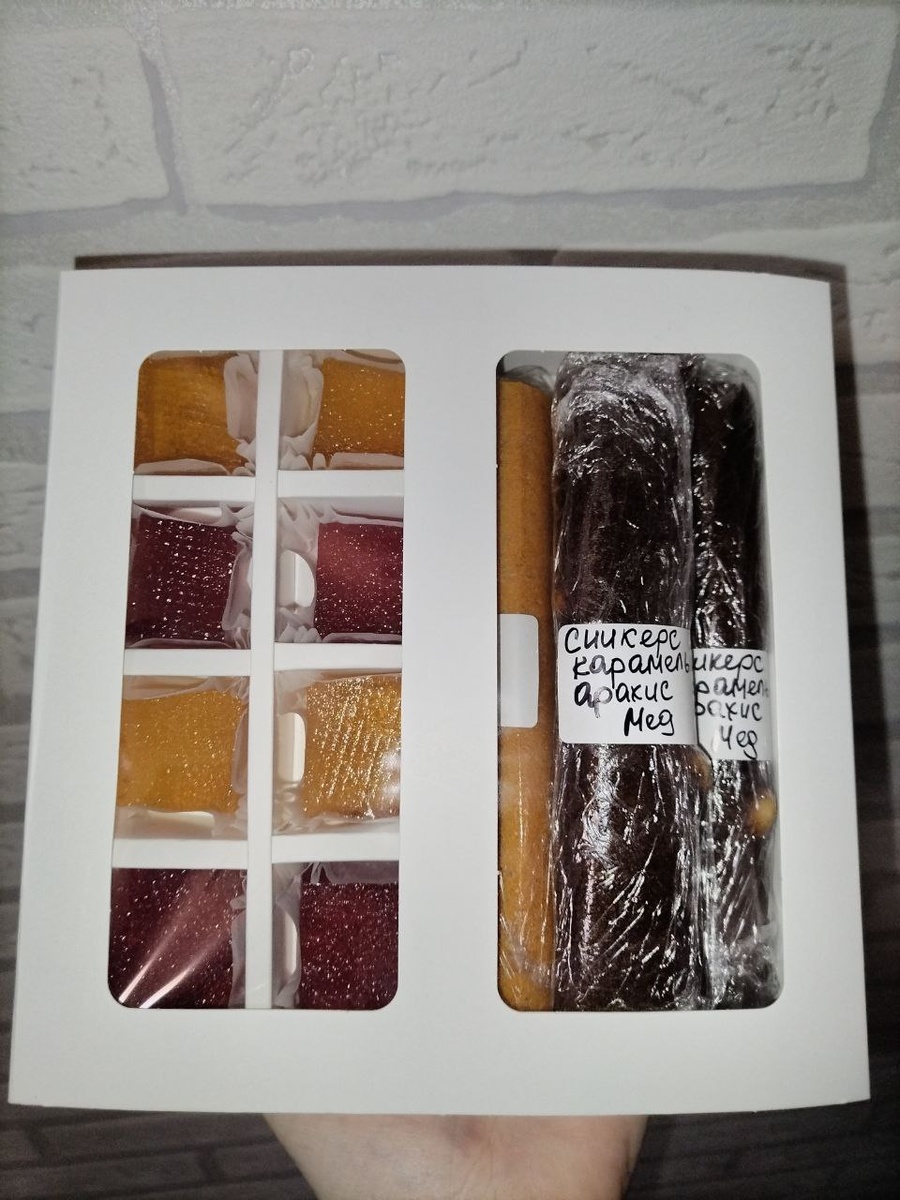Один из примеров вкусных подарков 🎁 Набор мармелад и пастила. Цена может отличаться в зависимости от вкусов мармелада и пастилы. Состав именно этого набора: 150гр мармелада клюква-лимон, имбирь лимон. Пастила : Лист сникерса (2 трубочки) 1/2 листа абрикоса 1/2 листа Антипростуда (лимон+имбирь) Цена именно за этот набор 790р