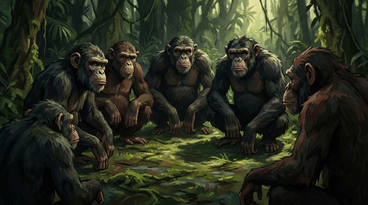 В 1960-х годах молодая исследовательница Джейн Гудолл прибыла в леса Танзании (парк Гомбе-Стрим). То, что она увидела поначалу, напоминало библейский рай. Шимпанзе, наши ближайшие родственники, казались «хиппи» животного мира. Гудолл рассказывала миру, что они живут сложными, но дружелюбными общинами, обнимаются, щекочут друг друга и используют инструменты.