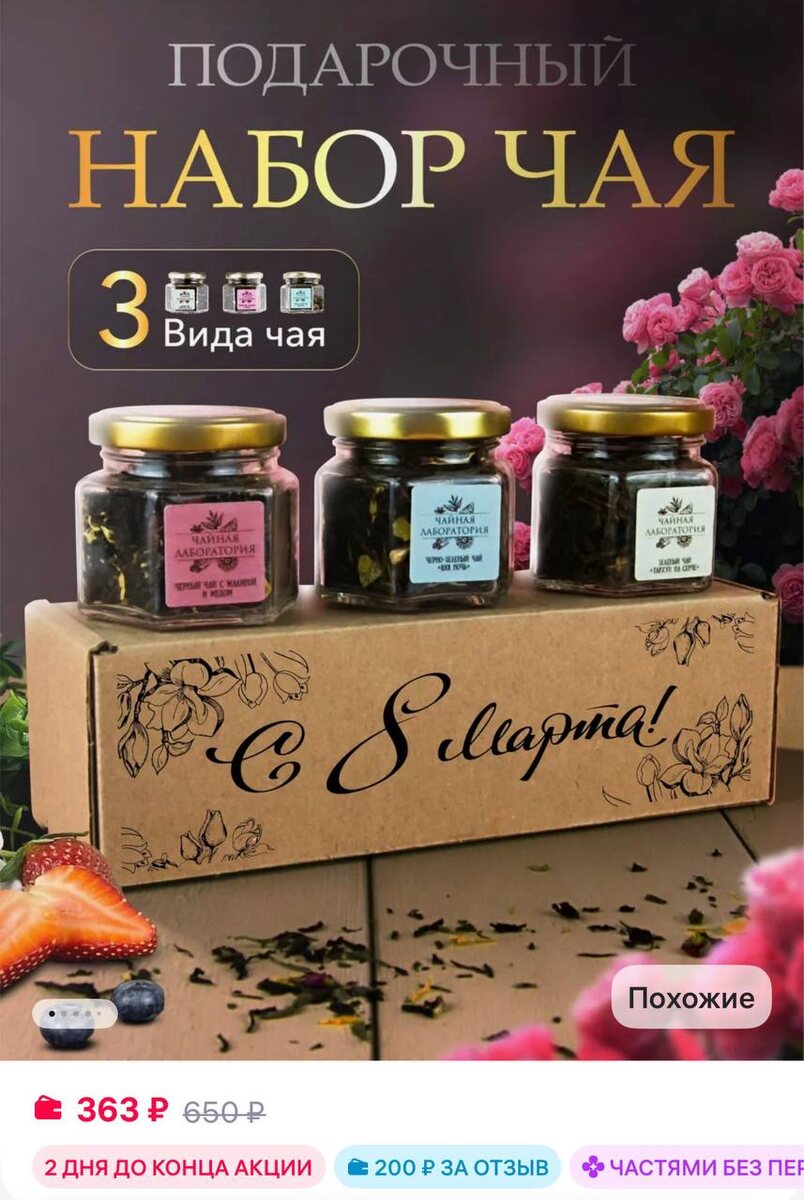 ! ДАРИ ДАРЫ ЯСНО Подарочный набор чая на 8 марта! https://www.wildberries.ru/catalog/759714151/detail.aspx?size=1104235923 ✅ Канал по скидкам 🔣 Бот с промокодами