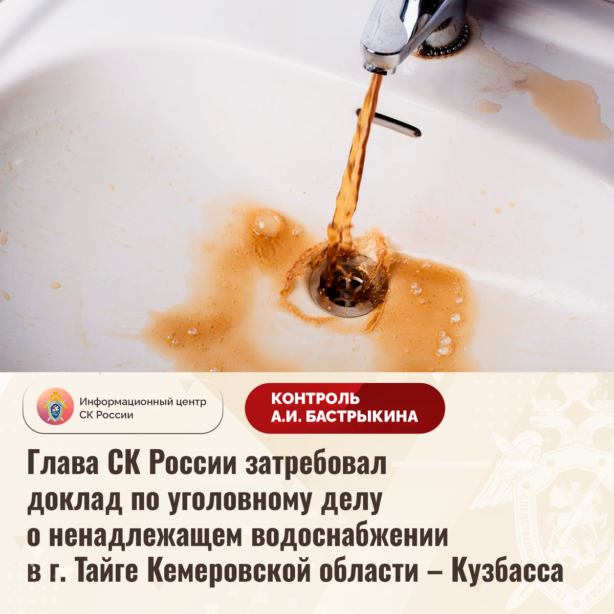 Глава СК России затребовал доклад по уголовному делу о ненадлежащем водоснабжении в г. Тайге Кемеровской области – Кузбасса В социальной сети сообщается о нарушении прав жителей города Тайги Кемеровской области – Кузбасса на качественное водоснабжение. Длительное время в жилые помещения граждан поступает жизненно важный коммунальный ресурс, непригодный для потребления и бытовых нужд в связи с наличием примесей, а также превышением показателей содержания химических веществ. Указанное привело к развитию у одного из местных жителей заболевания. Однако обслуживающей организацией мер к устранению нарушений не принимается. Ранее А.И. Бастрыкин ставил указанную ситуацию на контроль в центральном аппарате ведомства. В СУ СК России по Кемеровской области – Кузбассу расследуется уголовное дело. Председатель Следственного комитета Российской Федерации Александр Иванович Бастрыкин затребовал у и.о. руководителя СУ СК России по Кемеровской области – Кузбассу Павла Васильевича Курочкина доклад о хо