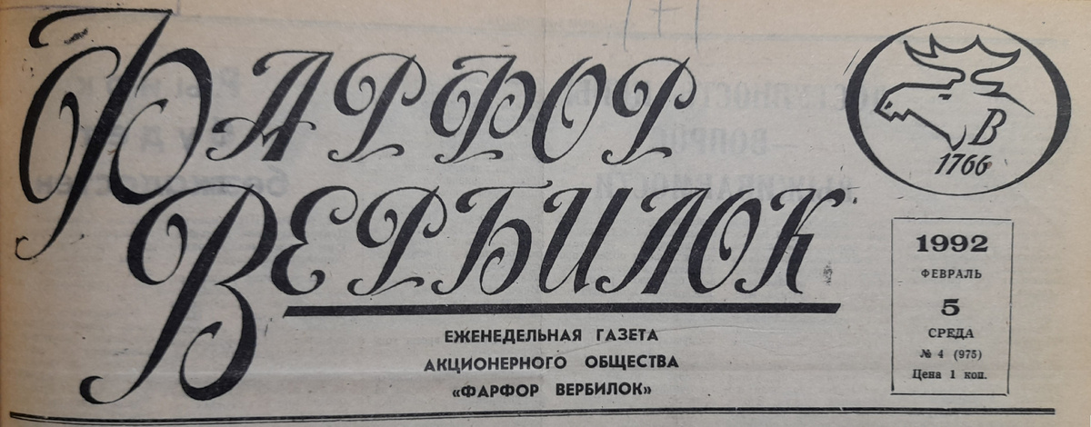 Друзья, делюсь любопытной заметкой из заводской газеты «Фарфор Вербилок» об экономии препарата жидкого золота и кризисе в производстве, начавшемся в 1991 году и проявляющийся по сей день. Фарфор Вербилок, еженедельная газета Акционерного общества «Фарфор Вербилок», 1992. – № 4 (975) от 5 февраля. – С. 1. В тысячи (!) раз подорожал препарат золота, применяемый для росписи изделий. В связи с этим заводской художественный совет, состоявшийся на прошлой неделе, обсудил и решил вопрос о сокращении расхода золота в производстве. Образцы тонкостенных сервизов «Ветка», «Пурпуровый лист», «Аркадия», а также «севрский», с которых художники «сняли» значительное количество золота, ничуть не проиграли в сравнении с привычными нам образцами. Напротив, «Ветка», отводка на которой уже в эти дни выполняется чёрной краской вместо золота, выглядит изящнее. Рельеф на «севрской» чашке, покрытый люстром и обведённый краской в тон, делает изделие законченным, не требующим дополнительных украшений. Что касает
