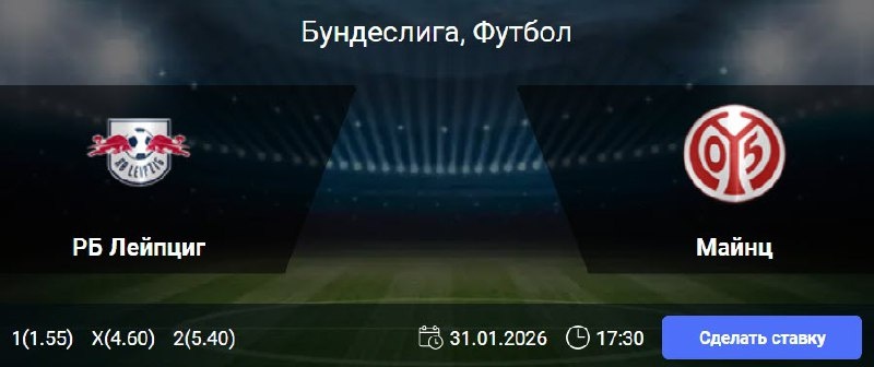 Статистика Лейпцига: В шести из восьми последних домашних игр «Лейпцига» в Бундеслиге голы забивались в обоих таймах. На своем поле клуб одержал семь побед в девяти предыдущих матчах чемпионата, уступив лишь дважды. В девяти из одиннадцати последних домашних встреч в рамках лиги команда забивала не менее двух голов. Статистика Майнца: В пяти из шести последних матчей «Майнца» в чемпионате обе команды забивали. В гостях «Майнц» не может одержать победу уже семь игр подряд в Бундеслиге (две ничьи, пять поражений). В шести из семи последних выездных встреч в рамках турнира клуб пропускал как минимум два мяча. 🎯 1X и ТБ (2.5) 🎲 кф (1.71) 👉 СДЕЛАТЬ СТАВКУ 🎁 ФРИБЕТ WINLINE - 3000₽ (промокод: BETWIN) 👉 СМОТРЕТЬ ПРОГНОЗ