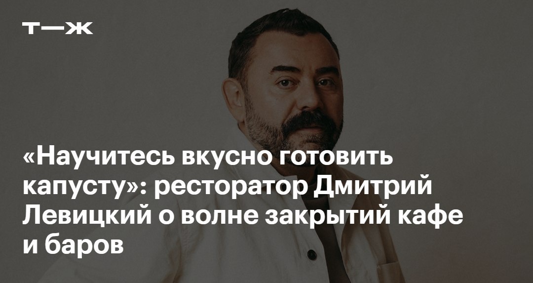 Если раньше человек ходил в ресторан четыре раза в месяц, а теперь ходит три, для него как будто ничего не поменялось. А ресторан потерял 25% дохода — и это сильнейшим образом бьет по его экономике. Обсудили с основателем сети «Дорогая, я перезвоню» закрытие кафе и ресторанов по всей стране. О чем поговорили: 🔴как повышение НДС сказывается на ресторанах; 🟣какой ценовой сегмент пострадал сильнее всего; 🔵почему пора готовить блюда из сезонных продуктов. Интервью целиком: https://t-j.ru/tg/interview-levitsky/