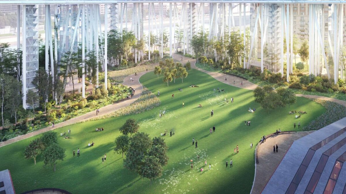 . ΠΠ΅ΡΠ²ΡΠΉ ΡΡΠ°ΠΆ Π΄ΠΎΠΌΠ° Π±ΡΠ΄Π΅Ρ Π½Π° ΡΡΠΎΠ²Π½Π΅ 10 ΡΡΠ°ΠΆΠ° ΠΎΠ±ΡΡΠ½ΠΎΠ³ΠΎ Π΄ΠΎΠΌΠ°, Π° ΠΏΠΎΠ΄ ΠΊΠΎΡΠΏΡΡΠ°ΠΌΠΈ ΠΏΠΎΡΠ²ΠΈΡΡΡ ΠΎΠ³ΡΠΎΠΌΠ½ΡΠΉ ΠΏΠ°ΡΠΊ. Π‘Π°ΠΌΠΎΠ΅ ΠΈΠ½ΡΠ΅ΡΠ΅ΡΠ½ΠΎΠ΅, ΠΊΠ°ΠΊ ΠΎΠ½ΠΈ ΠΏΡΠΎΠ΄ΡΠΌΠ°Π»ΠΈ, ΡΡΠΎΠ±Ρ Π½ΠΈΠΊΡΠΎ Π½Π΅ ΡΠΌΠΎΠ³ ΠΏΠΎΠΏΡΡΠ°ΡΡΡΡ Π·Π°Π»Π΅Π·ΡΡ ΠΏΠΎ ΡΡΠΈΠΌ ΡΡΠΎΠ»Π±Π°ΠΌ Π½Π°Π²Π΅ΡΡ
