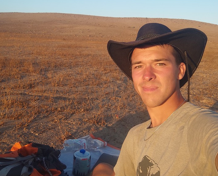 Навигация: Начало истории, 10 — 72 день Прошлая часть: День 97. Дорога. Несмотря на движение к экватору, ночи здесь по-прежнему ледяные. Представьте: днём я изнываю от жары, на каждой заправке стираю потную футболку, а ночью укутываюсь во всё, что есть — шерстяные носки, водолазка, кофта, куртка. Спится комфортно, но выходит, что днём я жду ночи, а глубокой ночью — не могу дождаться рассвета. Баланса тут нет. Пока завтракал, завёл знакомство с нарядной гусеницей. Кто она такая? На её мордочке — словно ритуальная маска. На шелкопряда не похожа. На трассу вышел пораньше, чтобы не повторить вчерашний результат. Познакомился с Антонио, проехались. Вновь показалось море. Туман чуть укрыл от солнца и сгладил полуденный зной. Затем меня подобрал Гидо. Крупные города остались далеко позади. К двум часам дня я оказался посреди ничего. Широкая трасса и лишь голые, выжженные холмы вокруг. Мимо проносятся фуры с рудой, и никто не тормозит. Дорога слишком широкая и быстрая. Проходит час. Второй. Тр
