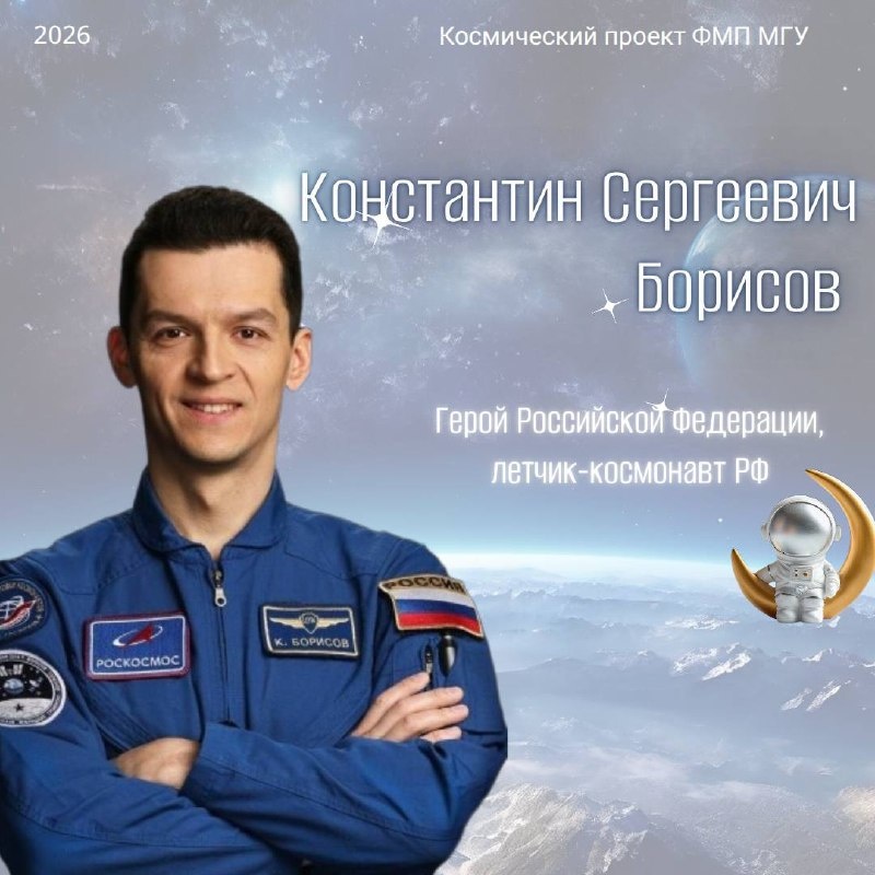 » — Г. Гречко Первые лекции ЗКШ 2026 состоятся уже через несколько дней. Одной из самых долгожданных традиционно считается лекция от человека, который не понаслышке знает, что такое космос. 👨🚀 Константин Сергеевич Борисов - российский космонавт-испытатель отряда ФГБУ «НИИ ЦПК имени Ю. А. Гагарина», Герой Российской Федерации. ✨ в декабре 2020 года – была присвоена квалификация «космонавт-испытатель»; ✨ в январе 2021 года - назначен на должность космонавта-испытателя; ✨ в августе 2023 г. принял участие в программе перекрестных полетов в качестве специалиста миссии Crew-7 и бортинженера МКС-70, отправился к станции на пилотируемом корабле «Crew Dragon». ✨ с мая 2025 года проходит подготовку в составе дублирующего экипажа МКС-75 в качестве бортинженера ТПК «Союз МС» и бортинженера МКС. 🏅Константин Сергеевич покоряет не только космическое пространство, но и водное: ▪️увлекается фридайвингом, является действующим международным судьей АИДА Интернешнл (категория С) и инструктор-тр