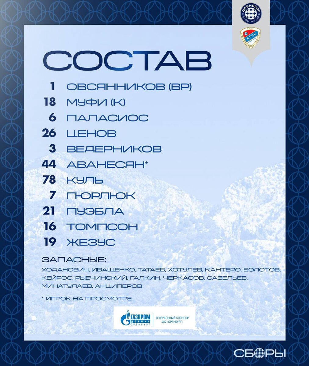 🇧🇦 Муфи с капитанской повязкой, Овсянников в воротах, Жезус на острие #ОренбургБорац