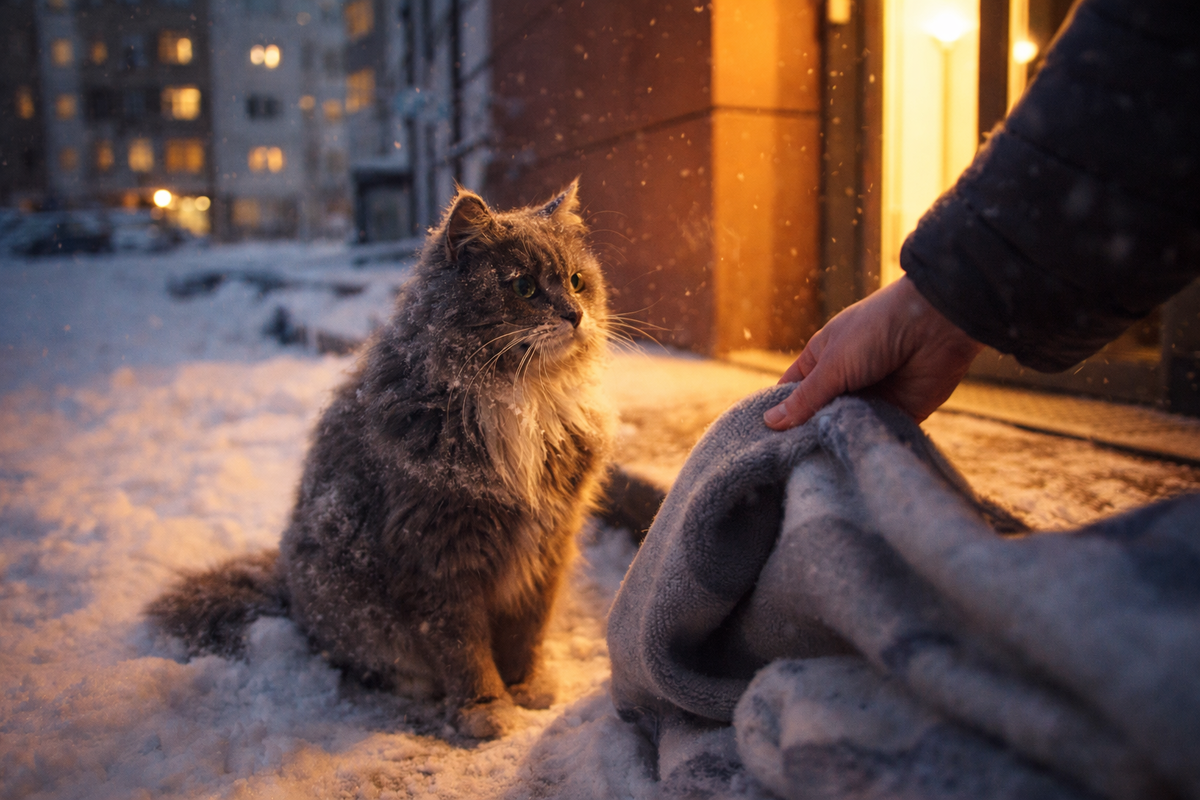 Кошку заметили в момент, когда проще всего сделать вид, что ничего не происходит. Она не тянулась к людям и не просила. Наоборот — будто