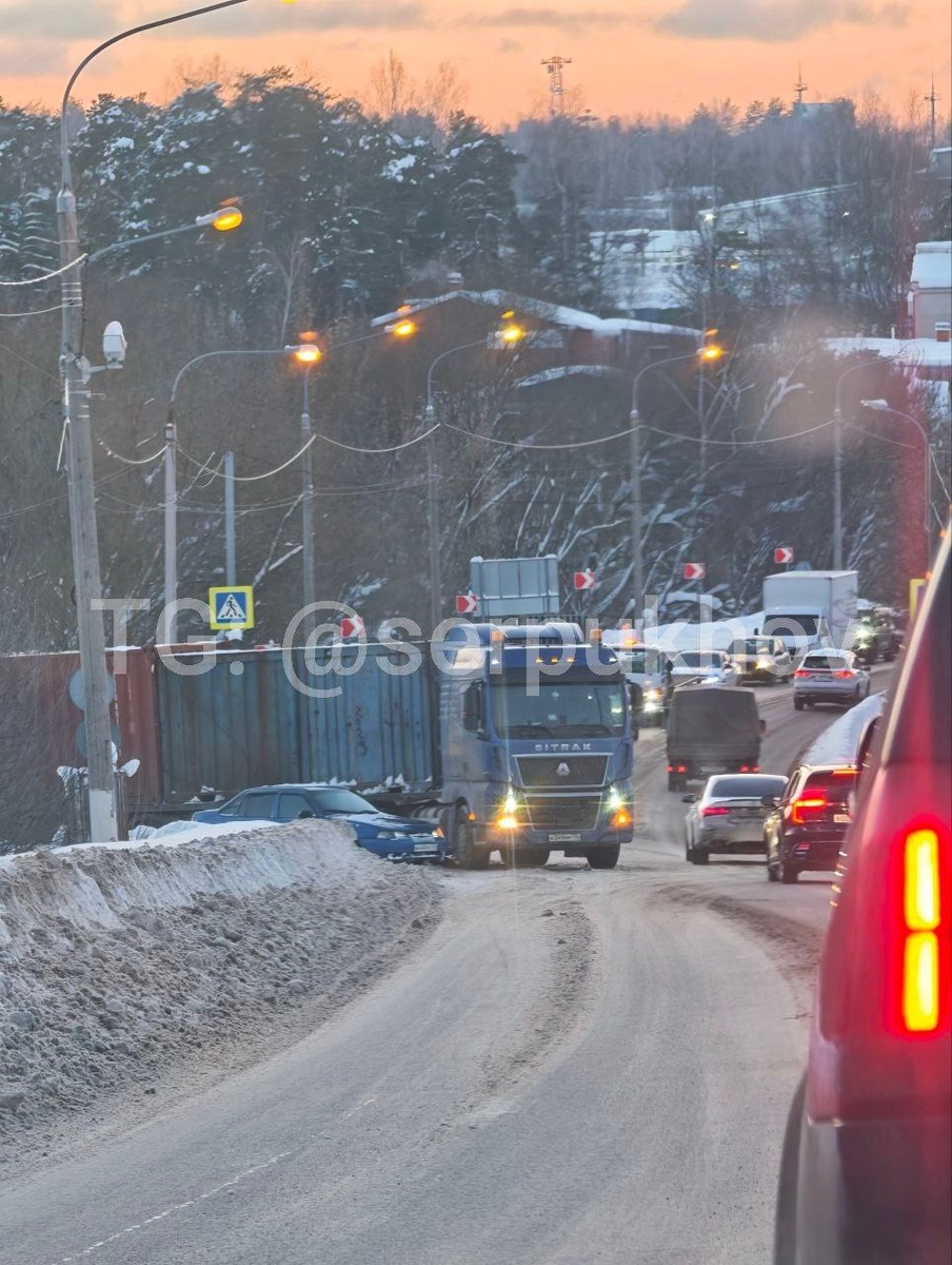 📩📤📥📨✉️ На перекрёстке со стороны Лужков контейнеровоз не смог подняться и увяз прицепом. Пробка в обе стороны (на Серпухов и в сторону трассы) @serpukhov