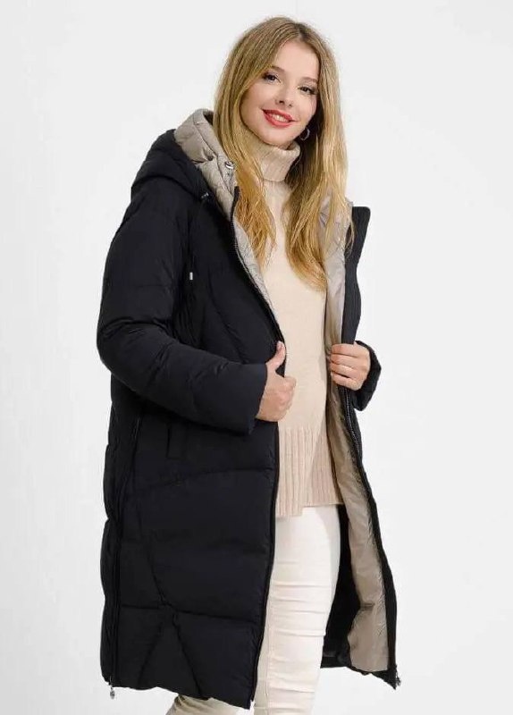 Пуховик зимний с двойным контрастным капюшоном 💞