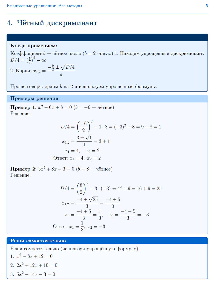 А где же взять ответы, чтобы проверить себя? 🤔 Все решения, подробные разборы каждого шага и дополнительные пояснения к типичным ошибкам я буду выкладывать в моём Telegram-канале. 🔗 Переходите, подписывайтесь и сверяйте свои решения: t.me/matemvlad Там не только ответы, но и много другой полезной информации для системной подготовки. Давайте решать вместе! Первую страницу с теорией и первыми задачами публикую уже завтра. Ставьте «👍», если такой формат полезен, чтобы я понимал, продолжать ли эту серию. #ЕГЭ2025 #математика #квадратныеуравнения #рабочийлист #репетитор #самоподготовка #разборзадач #телеграмканал #образование