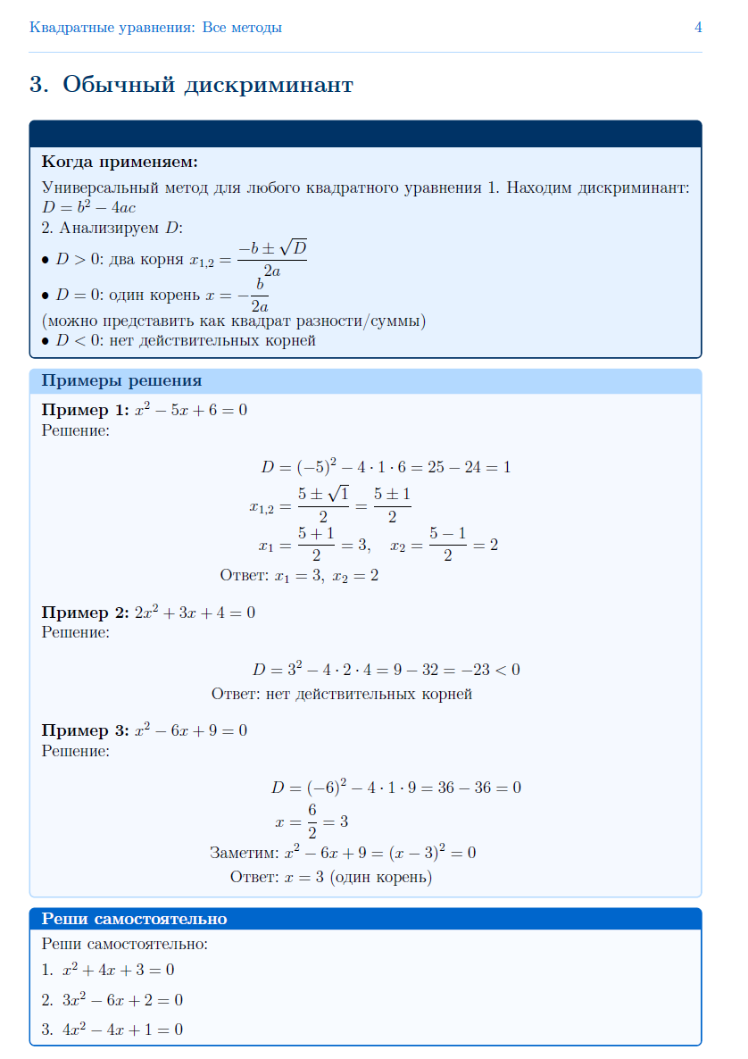 Рабочий лист по квадратным уравнениям: От теории к практике