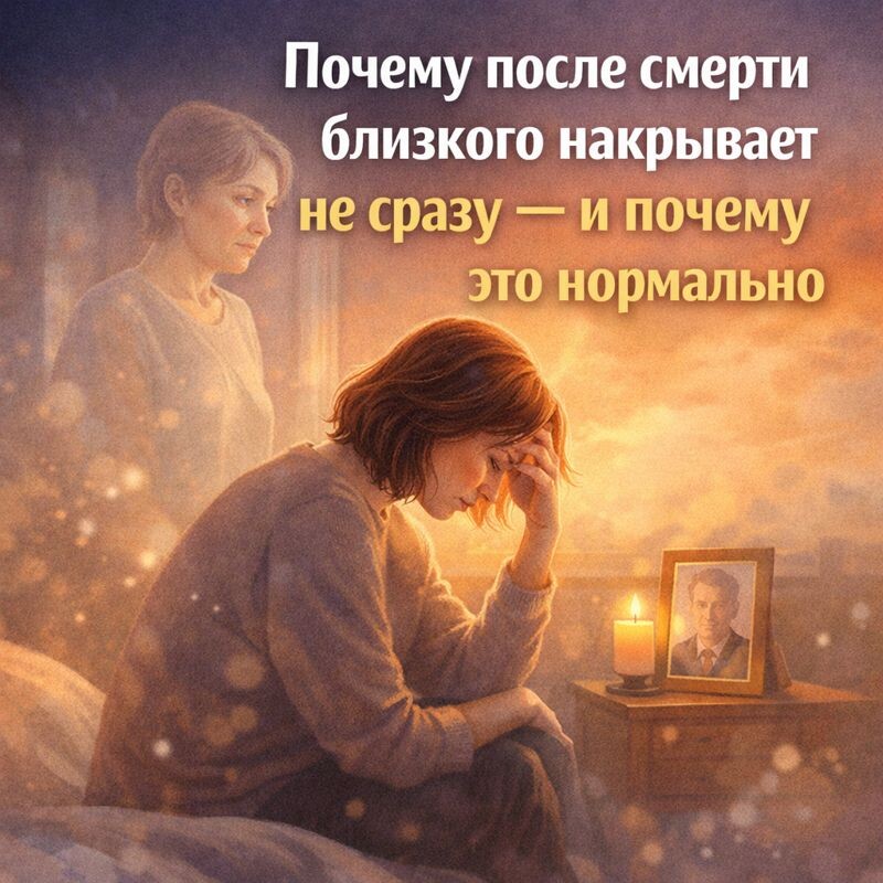 Иногда всё происходит не так, как «должно». Человек умирает - а вы… держитесь. Решаете вопросы, принимаете соболезнования, говорите спокойным голосом. Кажется, что внутри пусто или странно тихо. А потом - через недели, месяцы, а иногда и через год - накрывает. Без повода. В магазине. Ночью. От запаха, фразы, случайной мелочи. И появляется тревожный вопрос: «Почему тогда я ничего не чувствовал(а)? Со мной что-то не так?» Нет. С вами - нормально. Горе - это не кнопка. И не один сценарий. 1. Психика сначала включает «режим выживания»