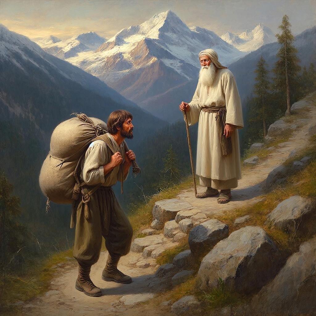 Однажды шел по дороге старый мудрый человек, разглядывал природу и любовался весенними яркими красками. Тут он увидел мужчину, который нес на плечах необъятно огромный груз. Было заметно, как у него от такой тяжести подкашиваются ноги.