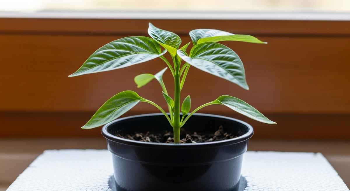 - Мой совет: Никогда не ставьте перцы прямо на пластик подоконника. Подложите лист пенопласта, старую толстую книгу или слой изолона. Корням должно быть тепло, тогда и верхушка пойдет в рост.
